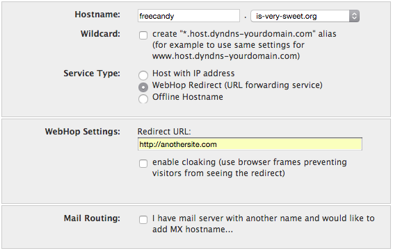 5. Once you have figured out a hostname to use, you will need to tell us where you want this hostname to go. You can have your hostname point to: