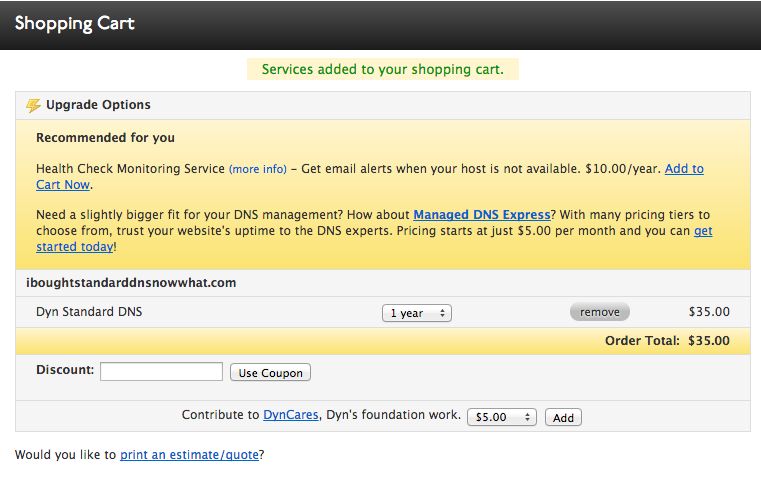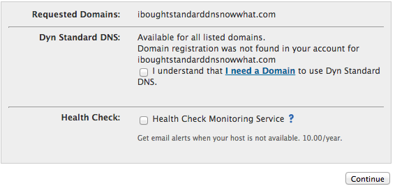 Dyn Standard DNS- This box will confirm that Dyn Standard DNS is available for the name(s) you requested.