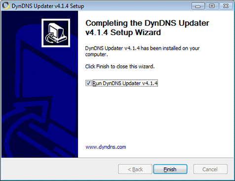 In this example, we'll keep 'Run Dyn Updater' checked. If you do not want to begin updating immediately, uncheck this option. To learn how to manually execute the Updater and its configuration utility, please read the General Use section of this article.
