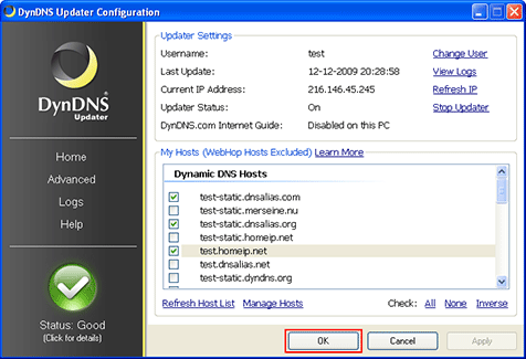 Status codes indicate how the Dyn Updater is updating your hosts. If the status is good (Green), then your hosts are up-to-date and you have nothing to worry about.