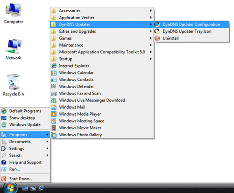Figure 15: Dyn Updater accessed from the Start Menu.