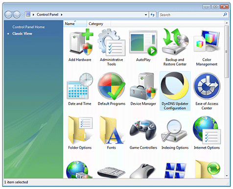 You may also access the Dyn Updater Configuration tool from the Windows Start Menu, and the Windows Control Panel.