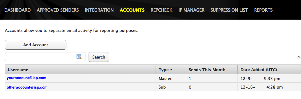 Use the following information to edit currently existing accounts in your Email Delivery account.