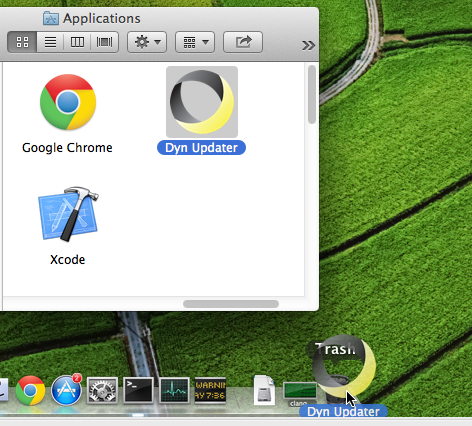 NOTE: The Dyn Updater *must* be installed into the Applications folder and will not run from anywhere else.