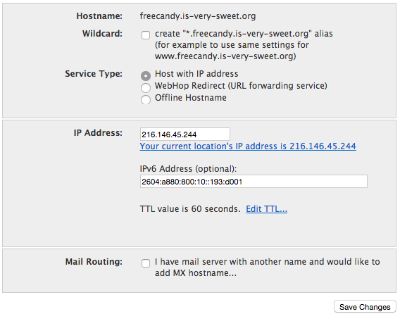 Dyn Remote Access gives you the flexibility to set up your new hostname for mail routing. You also have the ability to select a custom TTL (Time To Live) value for your hostname, in the event that your use case requires it.
